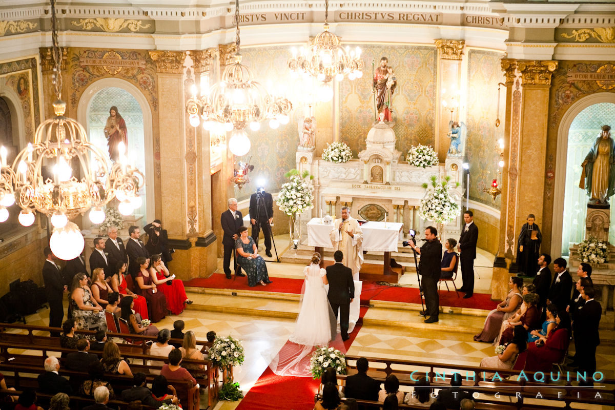A cerimônia foi no Marista São José - Tijuca. A arquitetura e as pinturas de lá são muito bonitas!! O Raphael se emocionou na entrada da sua amada. Um dos destaques foi quando o irmão do Raphael, o pajem, levou as alianças muito emocionado!